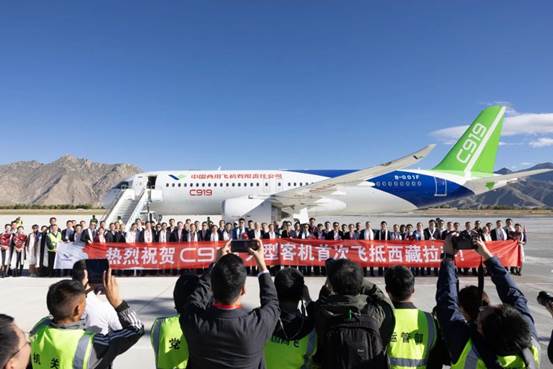 9月19日9時(shí)33分,國(guó)產(chǎn)大飛機(jī)C919平穩(wěn)降落在西藏拉薩貢嘎國(guó)際機(jī)場(chǎng)