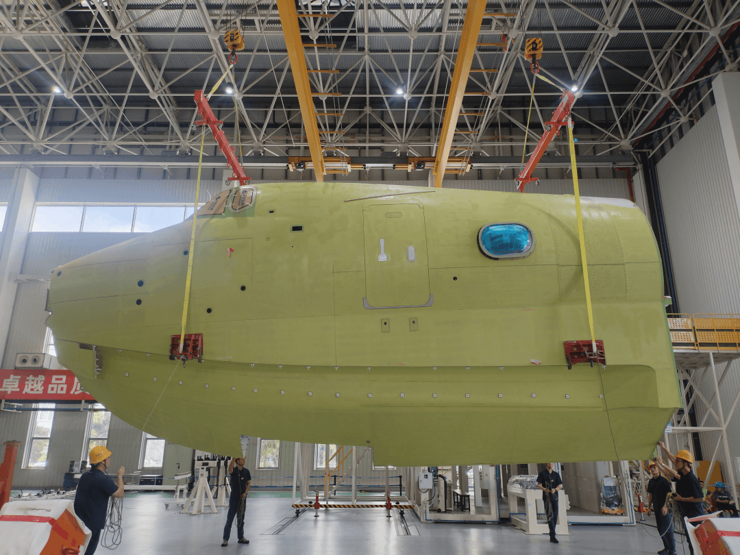 2024年,大型水陸兩棲飛機AG600批產首架機的成都造機頭大部件完成交付。